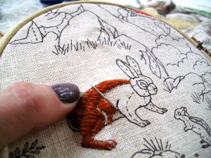 So I moved my rest area to the sun room and spent some time reading, finishing up the ‘custom’ page of the website and working on some embroidery. David surprised me when he got home with a vanilla/vanilla cupcake from my all-time favorite bakery, Magnolia. It was a bit banged up from his bike ride but that made me appreciate his thoughtfulness even more.
